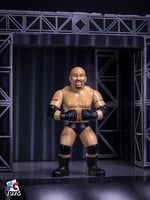 Pictured are production samples from Wrestle-Something Wrestlers Series 5. Final paints may vary slightly in final release. Figure stands at roughly 4.5 inches tall, will have a compatible peg hole in the foot that fits most display stands, has retro style articulation and vintage style packaging!