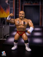 Pictured are production samples from Wrestle-Something Wrestlers Series 5. Final paints may vary slightly in final release. Figure stands at roughly 4.5 inches tall, will have a compatible peg hole in the foot that fits most display stands, has retro style articulation and vintage style packaging!